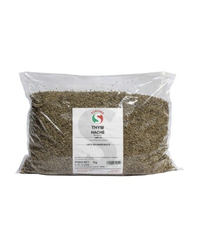 Le thym haché est issu des feuilles séchées des plantes Thymus zygis L. ou Thymus vulgaris L.. Débactérisé par traitement thermique, il garantit une qualité optimale et une utilisation variée.